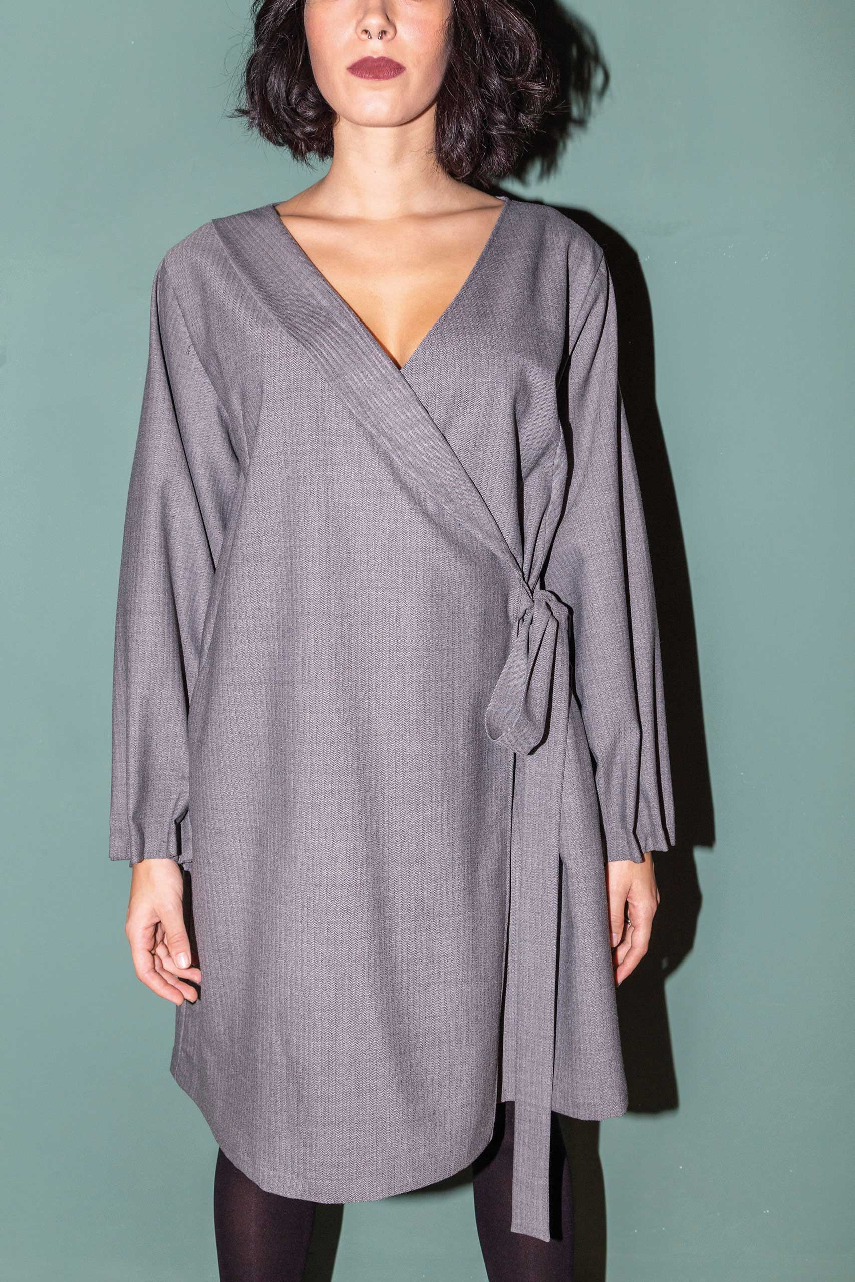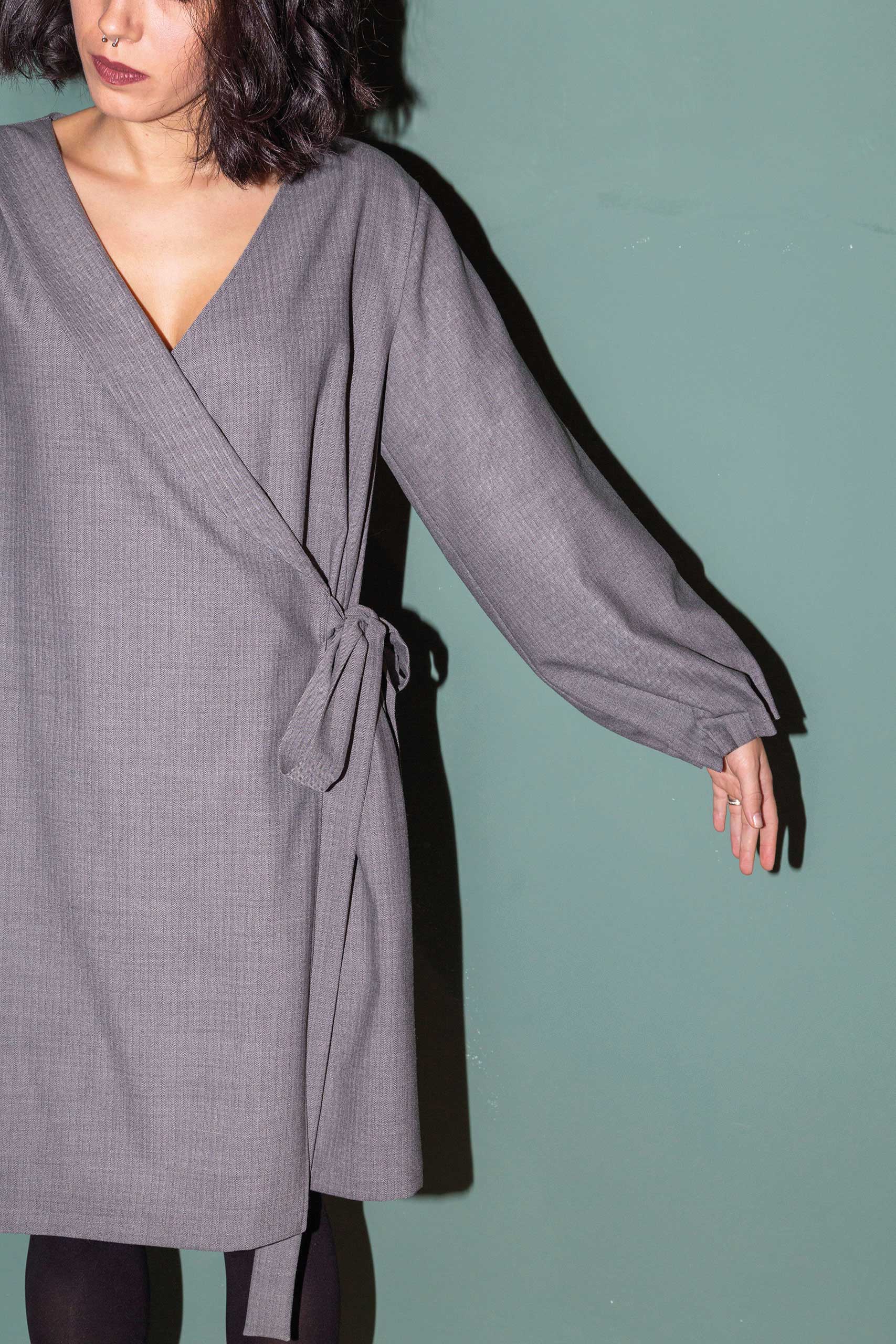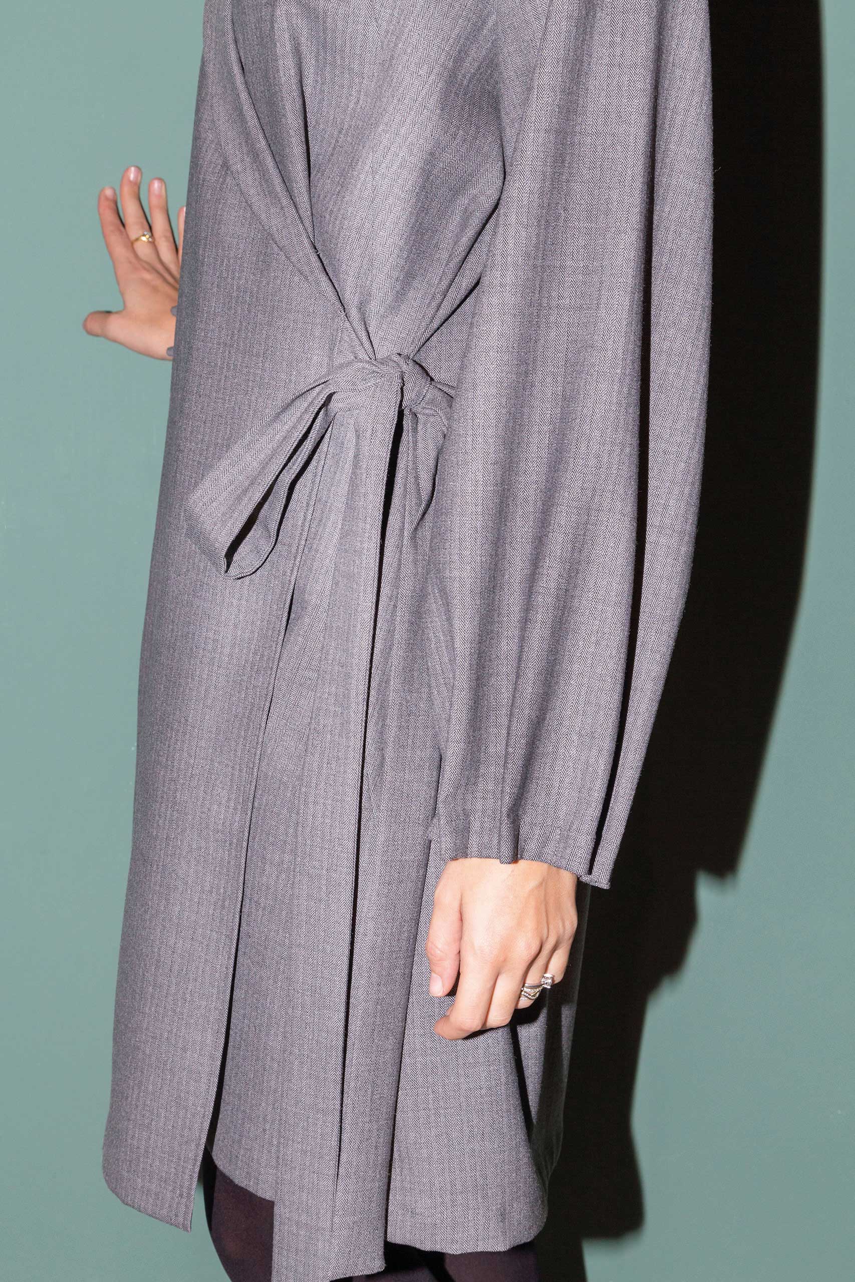 abito scaldacuore loose fit, manica a sbuffo con dettaglio polso “Carla” grigio